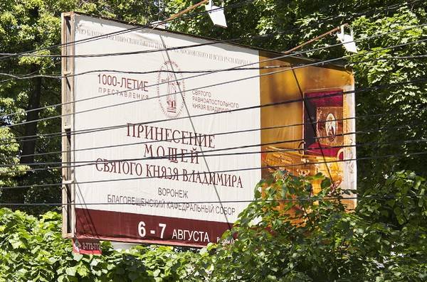 Как мы уже сообщали, прибытие в Воронеж ковчега с мощами равноапостольного князя Владимира состоялось в рамках всероссийского празднования 1000-летия преставления святого равноапостольного князя Владимира, по благословению Святейшего Патриарха Московского и всея Руси Кирилла. Ковчег с мощами св. Владимира – Крестителя Руси будет принесен в 45 городов России и 5 городов Беларуси. Акция проходит по инициативе РПЦ и при поддержке Фонда святителя Василия Великого.