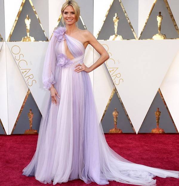 Хайди Клум просто насмешила. В её платье слишком много материала и ужасно неудобный вырез, плюс развевающийся шифон цвета лаванды. Один из худших нарядов «Оскара», по мнению стилистов.