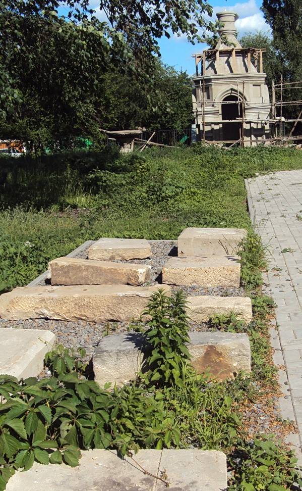 уцелевшие надгробья и строящаяся часовня.