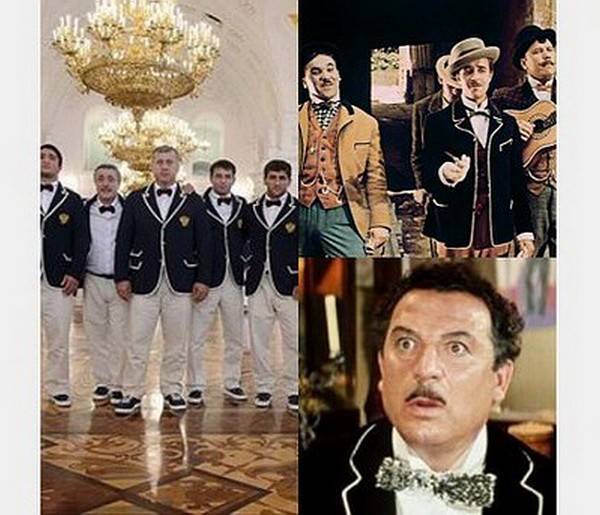 Парадная форма членов олимпийской команды России, изготовленная компанией Bosco, была подвергнута разгромной критике в сети. Мало того, что она делает спортсменов похожими на официантов или швейцаров, так ещё и до боли напоминает известные ранее образцы.
