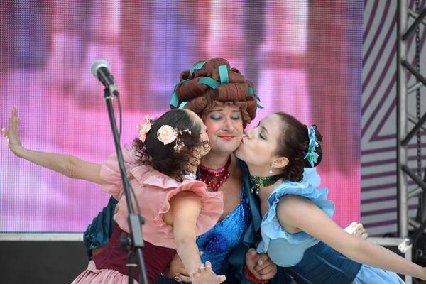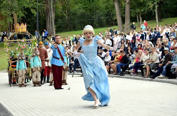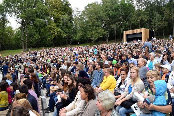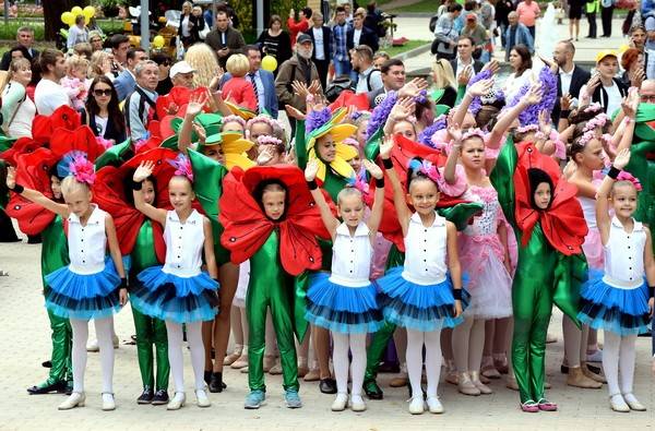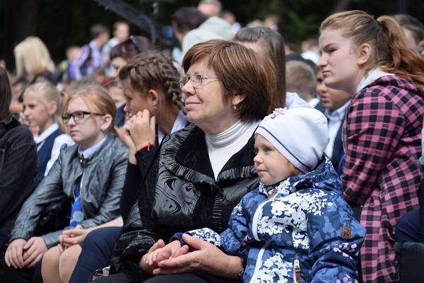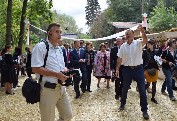 Осмотрев значительную часть экспозиции, почётные гости направились в Зелёный театр, по дороге их приветствовали юные участники праздника.