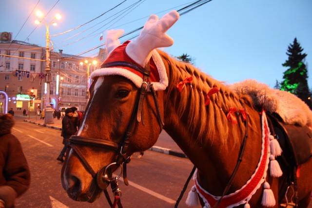 И до того, как началось само представление, народ не скучал: кто-то согревался горячими напитками и пританцовывал под новогодние песенки, другие фотографировались со сказочными персонажами. А напротив Никитинской библиотеки можно было покататься на лошадях и пони, которые, кстати, тоже были по-новогоднему наряжены. Для детишек вокруг площади курсировал разноцветный светящийся паровозик.