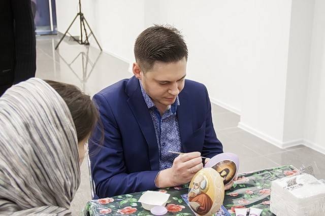Затем он принял участие в изготовлении расписного Пасхального яйца. Вместе с аналогичными изделиями генерального директора ООО «Группа компаний Хамина» Евгения Хамина, руководителя управления культуры администрации города Воронежа Андрея Харитонова, других именитых воронежцев работа Владыки Сергия будет выставлена на благотворительном аукционе, который стартует 9 апреля.