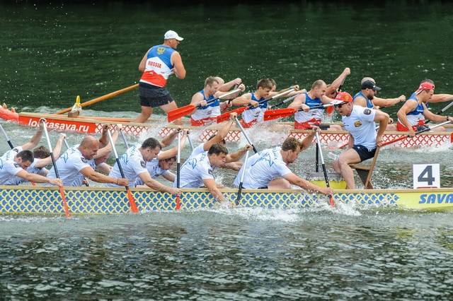 Дракон – большое 20-местное каноэ, с головой дракона и хвостом. Впереди сидит барабанщик, который бьёт в большой барабан, задавая ритм гребцам. Двадцать гребцов сидят по десять с каждой стороны. На корме находится рулевой. История лодок и гонок на них восходит к древнему Китаю.