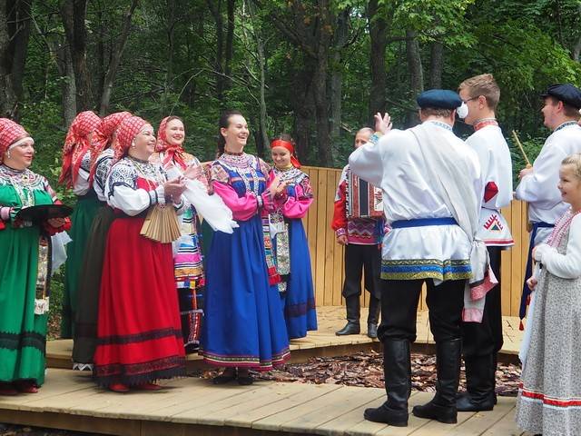 Гостей ожидает «Поляна молодоженов», где они смогут увидеть древние свадебные традиции: выкуп невесты, благословение родителей иконой, встречу новобрачных караваем. Оценить выступление народного вокального ансамбля русской песни «Славяночка» и ансамбля «Тараторка».