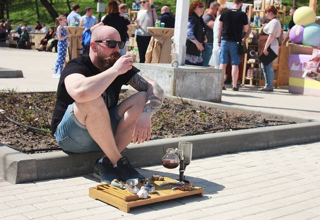 Пришедшие на фестиваль хотели сравнить технологию приготовления кофе (обычного горячего кофе) у разных кофеен. Но в итоге погода взяла верх – наибольшее количество посетителей наблюдалось вокруг тех палаток, в чей ассортимент входил волшебный «айс-кофе».