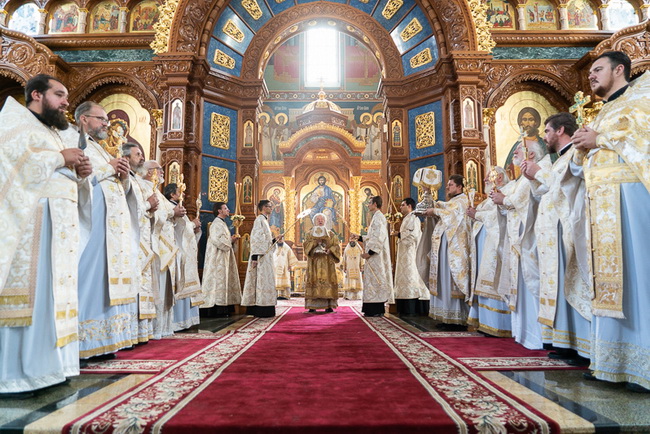 Митрополит Воронежский и Лискинский Сергий возглавил торжественные богослужения праздника обретения мощей святителя Митрофана Воронежского – всенощное бдение, Божественную литургию и молебен у честных мощей Архипастыря в Благовещенском кафедральном соборе.