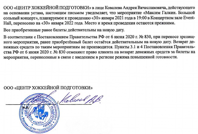 Устроители предлагают всем, кто купил билеты, сохранить их до 30 января следующего года и постараться дожить до этого светлого дня. К счастью, билетов реализовано совсем немного – видимо, это и стало одной из причин срыва мероприятия.