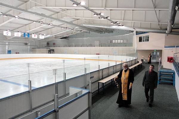 Благочинный Лискинского церковного округа протоиерей Василий Вылуск и настоятель Богоявленского храма села Средний Икорец священник Роман Скляров освятили в Лисках Ледовый дворец, - сообщает Воронежско-Борисоглебская епархия.