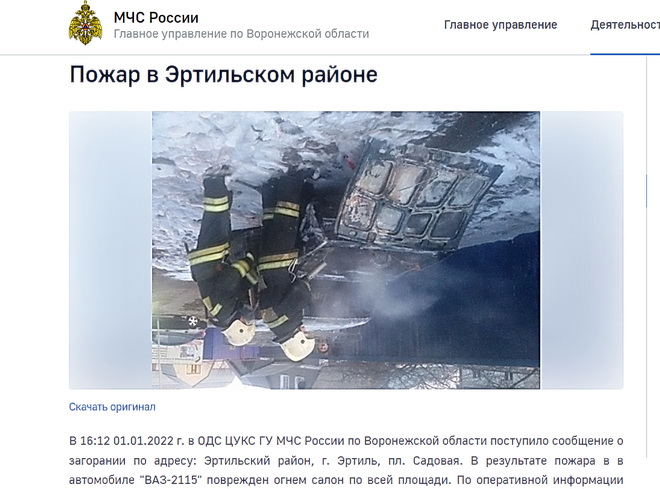 1 января Главное управление МЧС по Воронежской области сообщило на своём официальном сайте о пожаре в Эртильском районе. К счастью, никто не пострадал, кроме… авторитета ведомства.