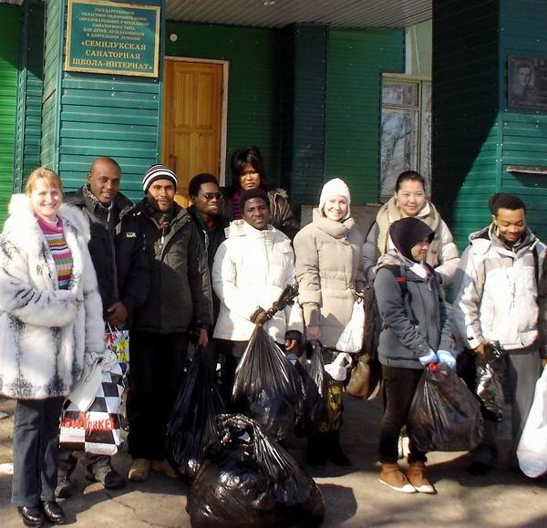 Иностранные студенты Воронежского государственного университета, представители 11 стран мира - Эфиопии, КНР, Замбии, Черногории, Таиланда, Вьетнама, Мадагаскара, Индонезии, Гвинеи, Кабо-Верде, Монголии - посетили государственное областное оздоровительное образовательное учреждение санаторного типа для детей, нуждающихся в длительном лечении «Семилукская санаторная школа-интернат».