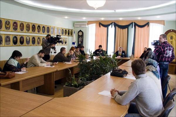 Представителей СМИ интересовали различные аспекты состояния современного общества, которое может быть улучшено через слово, содержащееся в православной литературе. Это вопросы воспитания молодого поколения, просветительская деятельность, развитие духовных центров на территории области, помощь образовательным учреждениям, исторические параллели. На все эти вопросы журналисты получили развернутый ответ.