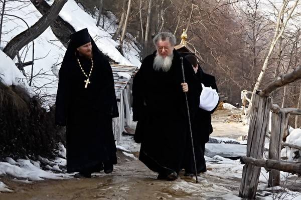 Богослужение и встречи митрополита Сергия в пещерном храме
