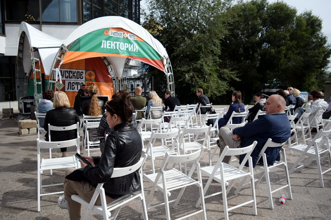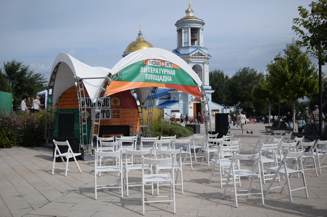 Вышеупомянутой литературной площадке с расположением повезло больше. Посторонний шум не мешал зрителям слушать стихи, однако локация пустовала до 14:30. И все бы ничего, если бы в программе фестиваля не было написано, что 4 сентября литературная площадка работает с 12:00. По сути организаторы довольно халатно относятся к расписанию, которое сами же составили, и сдвигают время тех или иных мероприятий на своё усмотрение. Это, конечно, дезориентирует публику, поэтому и стихи пришло послушать не так много людей.