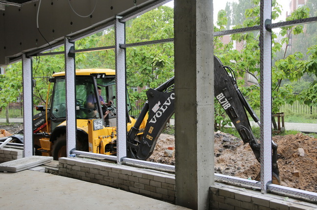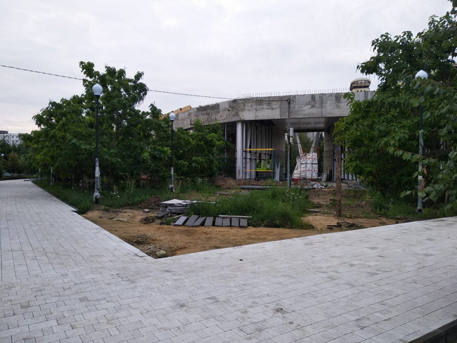 Однако, несмотря ни на что, работы на объекте ведутся: «осуществляется подготовка территории к озеленению, обустраиваются тротуарные дорожки, система автополива и освещения. На первом этаже здания идёт монтаж витражей, а также ведутся работы по внутренней отделке помещений.