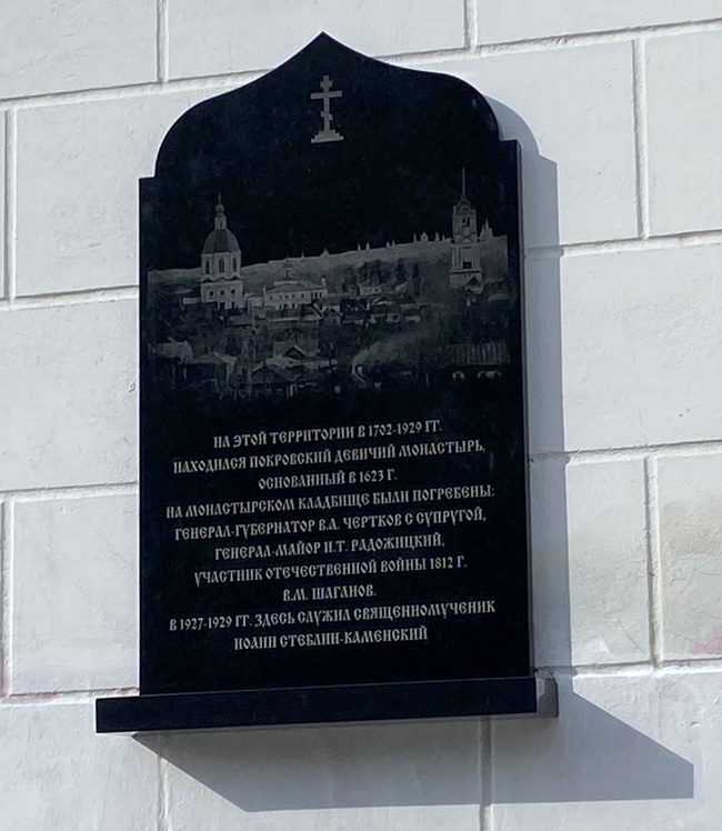 В Воронеже установлена мемориальная доска в память об утраченном Покровском монастыре
