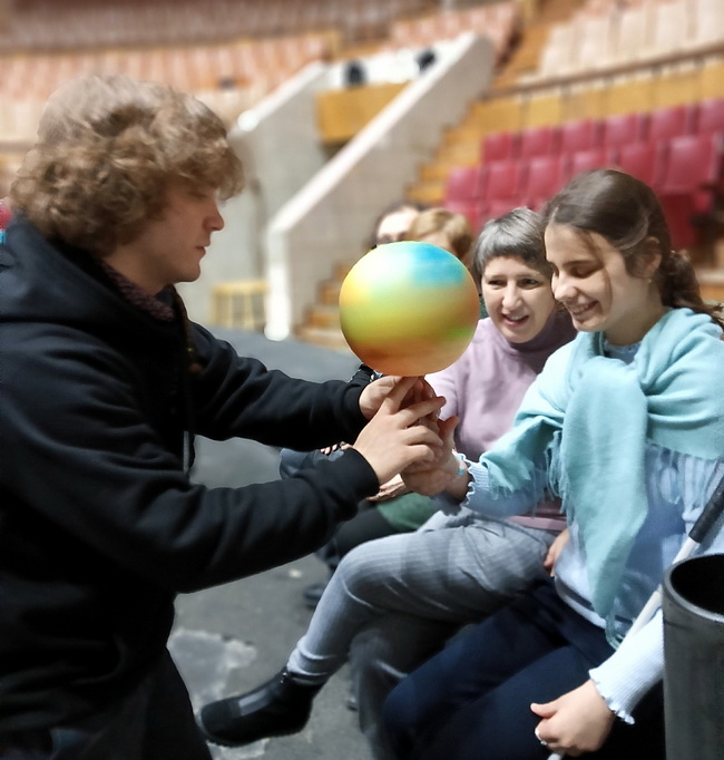 Нередко актёры ревностно относятся к своему реквизиту, а Фей не только дал всё осмотреть, он дал прочувствовать. Каждый из присутствующих попробовал себя в роли эквилибриста на катушках, где Игнат поддерживал участников, как настоящих актёров. На время выполнения трюка зрители замолкали, чувствуя волнение и старание участника, но как только всё получалось, были аплодисменты, будто на настоящем представлении.