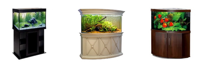 Различных форм в продаже огромное множество, сложно даже подсчитать сколько их. Только основных шесть, обычно по форме геометрических фигур. А встречаются ещё и различные дизайнерские, есть даже в виде стола, а аквариум-картинка – это уже почти стандартный вариант. Но определиться тут довольно просто. Надо просто заранее продумать место, где он будет стоять и уже, исходя из этого, искать конкретную модель. Согласитесь, круглый аквариум сложно встроить в стандартную квартиру.
