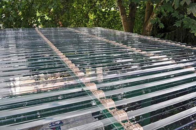 1. Строительство крыш и кровель: Профилированные листы поликарбоната часто используются для покрытия крыш, включая теплицы, парники, павильоны и оранжереи. Высокая светопропускная способность и лёгкость делают их идеальным выбором для таких конструкций.