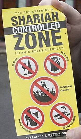По всей Великобритании в массовом порядке стали появляться желтые плакаты, объявляющие целые районы свободными от алкоголя, проституции, азартных игр, наркотиков. Жителям этих районов запрещается под угрозой расправы слушать музыку, устраивать концерты, курить и колоться. Во всех этих зонах объявлено верховенство шариатского закона.
