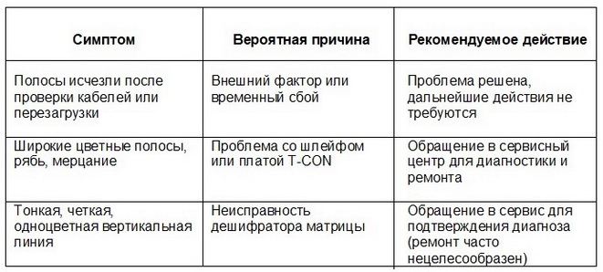 Что означают цветные вертикальные полосы на экране телевизора?
