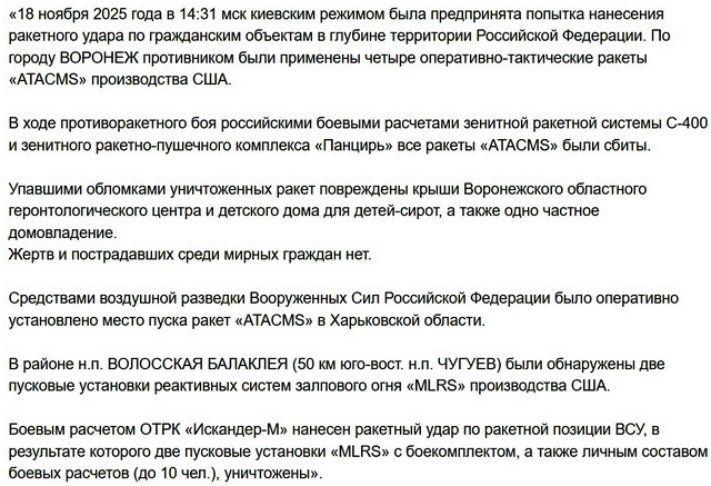 Минобороны: Воронеж был атакован ракетами
