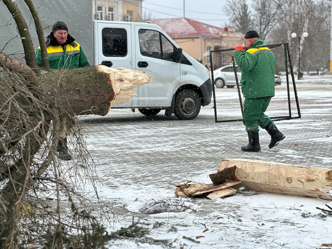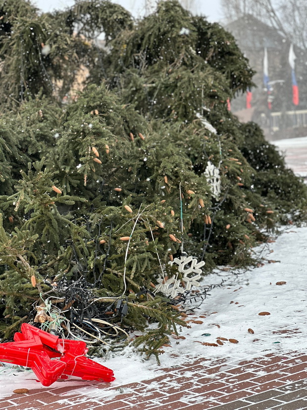 В Бутурлиновке сильный ветер повалил городскую Новогоднюю ёлку