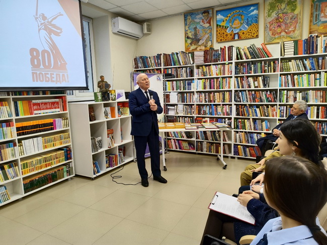 Сотрудники модельной библиотеки напомнили собравшимся о славных страницах обороны города Воронежа, которые вписали в историю столицы Черноземья его уроженцы и представители самых разных республик Советского Союза. День и ночь они самоотверженно сражались с беспощадным врагом на поле боя – в окопах, у зенитных орудий, в танках и самолетах, в диверсионных и истребительных отрядах. Враг так и не смог овладеть городом, понеся огромные потери.