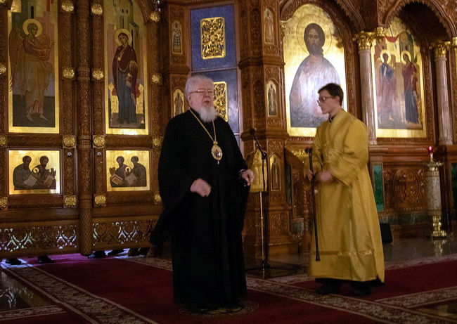 По сугубой ектении митрополит Леонтий вознес молитву ко Господу, в которой возсылалось благодарение Богу за прошедший год и испрашивалось благословение на год грядущий: