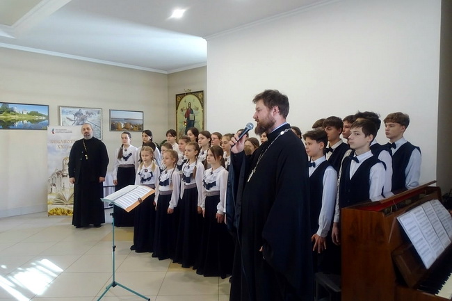 В заключение гостям была представлена литературно-музыкальная композиция. Отец Константин прочитал несколько рассказов из своей авторской книги "Непридуманные рассказы" в сопровождении пения детско-юношеского хора храма под руководством иерея Андрея Саврицкого.