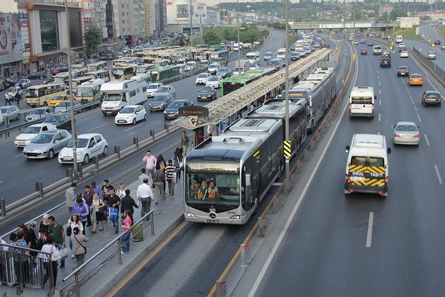 Стамбул (Турция) — Metrobüs. Уникальная линия протяженностью 52 км, соединяющая европейскую и азиатскую части города через Босфорский мост.