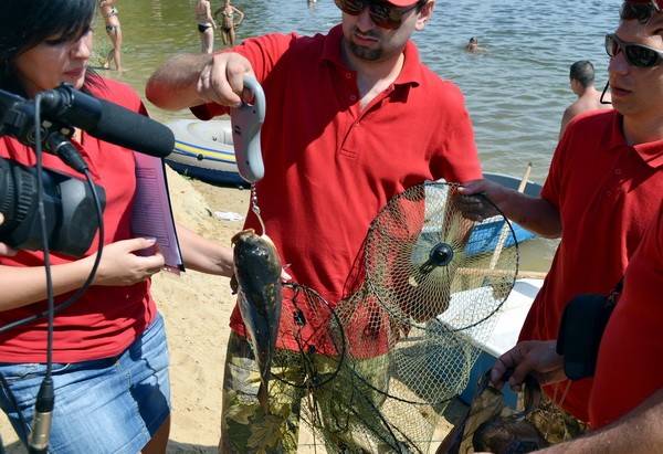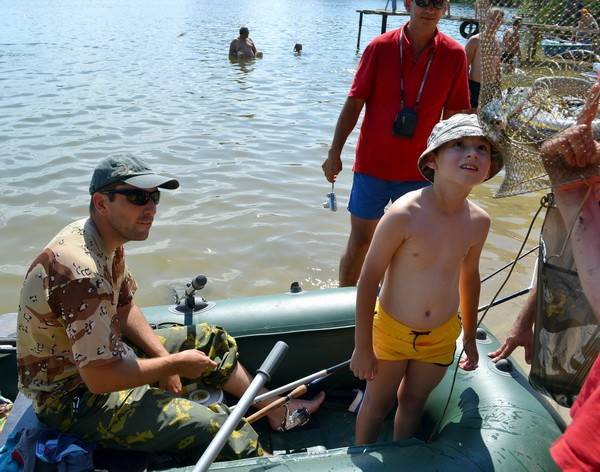 Рыбаки разместились по всему водоему с раннего утра. Поначалу рыба клевала неплохо, но когда над прудом сгустился зной, перестала. Вместо сазанов в воде стали резвиться отдыхающие. А обитатели подводного мира ушли на дно. Но некоторые мастера рыбной ловли все-таки сумели показать класс.