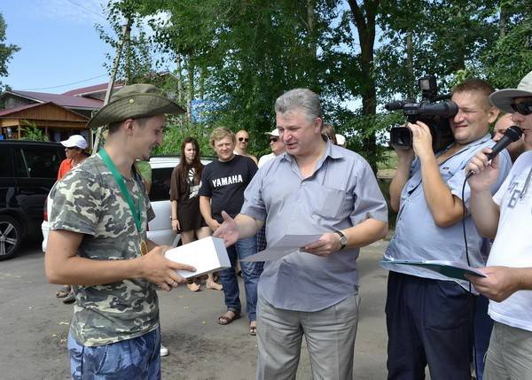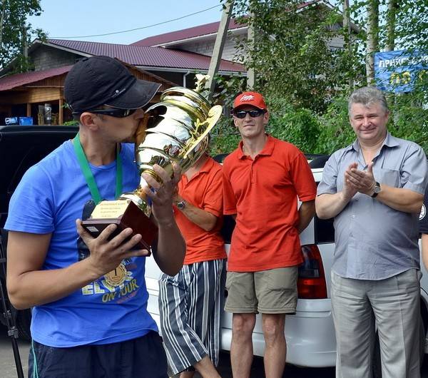 И вот, наконец, победители объявлены. Первое место по общему количеству выловленной рыбы (4,45 кг) занял Николай Бородин. Ему вручили чемпионский кубок и массу призов от спонсоров.
