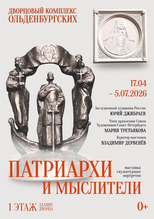 17 апреля впервые в Дворцовом комплексе Ольденбургских начинает работу выставка скульптурных портретов «Патриархи и мыслители». Это совместный проект Дворцового комплекса Ольденбургских и известных Петербургских скульпторов: Юрия Джибраева – заслуженного художника России и Марии Третьяковой – члена правления Союза художников Санкт-Петербурга.