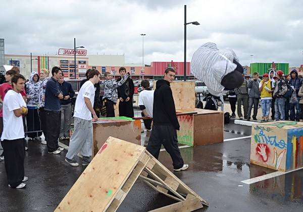 На освободившееся место пришли любители и мастера хип-хопа, а рядом показывали свои фантастические трюки паркурщики. Казалось, земное притяжение не имеет над ними власти. Ребята парили над землей, делали сальто и совершали такие прыжки, которые простым смертным ни за что не повторить.