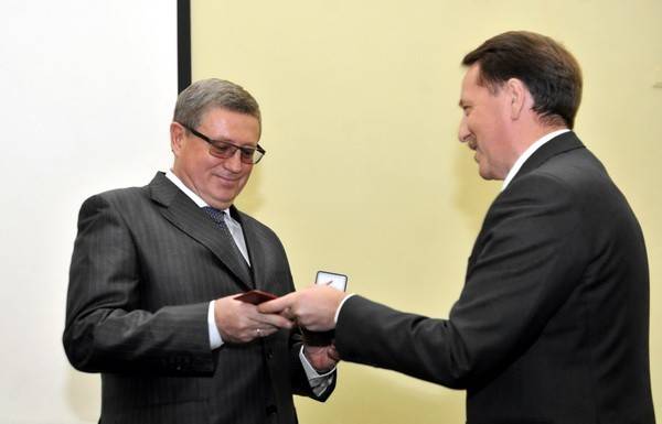 Завершив свою речь, губернатор вручил почетный знак правительства области «Благодарность от земли Воронежской» членам землячества - председателю совета директоров ОАО «РОСНАНО» Владиславу Путилину и отметившему в прошлом году свое 75-летие бывшему первому секретарю Воронежского обкома КПСС Геннадию Кабасину. Награды они удостоены за многолетний плодотворный труд и большой личный вклад в развитие социально-экономического и промышленного потенциала региона.