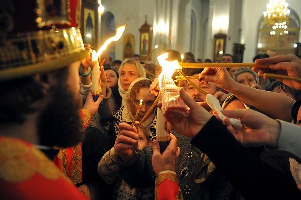 Ночное пасхальное Богослужение пронизано оптимизмом. Настроение молящихся определяют слова святителя Иоанна Златоуста, которые читаются уже тогда, когда за окнами православных храмов просыпается утро: «Смерть! Где твое жало? Ад! Где твоя победа?»