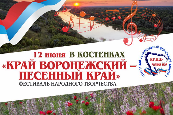 Впервые в День России, 12 июня, в селе Костёнки Хохольского района пройдёт фестиваль народного творчества «Край воронежский – песенный край». Крупномасштабный проект, организованный Воронежским областным центром народного творчества и кино при поддержке департамента культуры Воронежской области, представит уникальное песенное наследие региона.