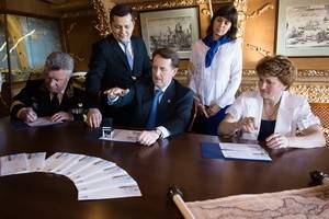 27 апреля состоялась церемония специального гашения почтовых конвертов, посвященная 315-летию со дня спуска на воду корабля «Гото Предестинация». В акции принял участие губернатор Воронежской области Алексей Гордеев.