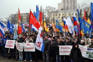 Плохая погода не помешала воронежцам 4 марта провести митинг в поддержку братского украинского народа и русскоязычного населения Украины. По разным данным, на Советской площади собралось от 5 до 8 тысяч человек.