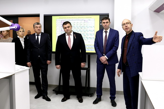Помимо просторных, светлых и стильных классных комнат, которые с любопытством рассматривали ученики и первого, и десятого классов, гости посетили уникальные для Воронежа кабинеты химии, биологии и физики. Здесь всё продумано, технологично и радует глаз — яркое, многофункциональное оборудование и десятки возможностей трансформировать образовательное пространство, превратить два смежных класса в огромную лабораторию. Все оборудование отечественное, а учителей, которые будут с ним работать, бесплатно обучил поставщик.