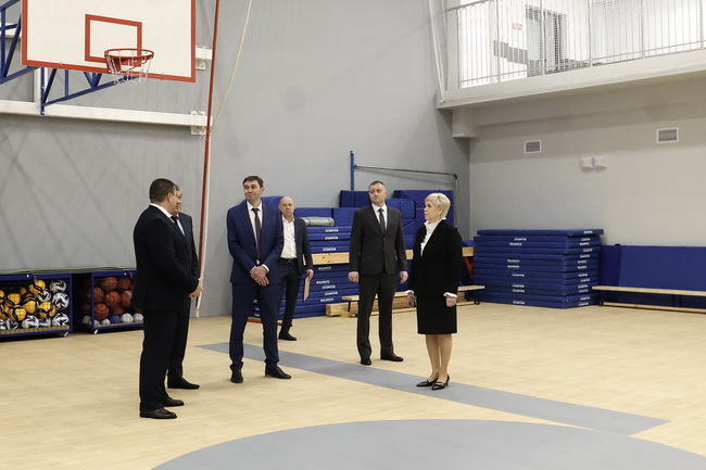 Вместе с гостями Сергей Петрин посетил большой спортивный зал, а завершилась экскурсия в актовом зале, где проходило торжество, посвященное открытию.