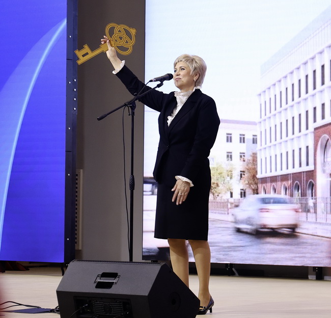 Первоклассники прочитали стихи о школе, а их старшие товарищи исполнили песни «Россия-матушка» и «Миллионы сердец». Кульминацией торжества стало вручение символического ключа от школы директору Ольге Карташовой. Его передал Ольге Алексеевне представитель подрядной организации Рустам Казиев.