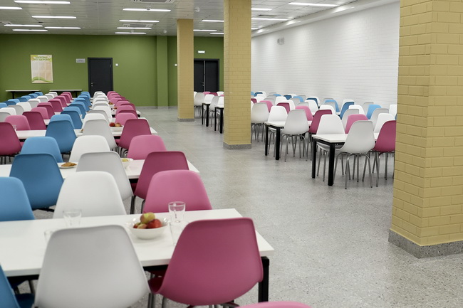Свою работу начала и просторная столовая: обеденный зал площадью почти 370 квадратных метров рассчитан на 360 посадочных мест. Как отметила директор школы Ольга Карташова, гордостью этой локации стала тестомешалка, которая поможет разнообразить меню.