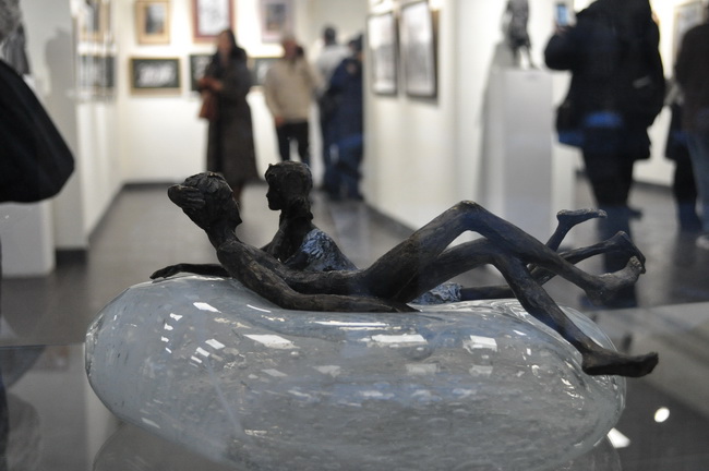 Выбор для экспозиции двух видов изо оказался плодотворным. Сочетание графики и скульптуры высекло творческую искру и создало на площадку особую атмосферу, в которую с порога погружается каждый посетитель.