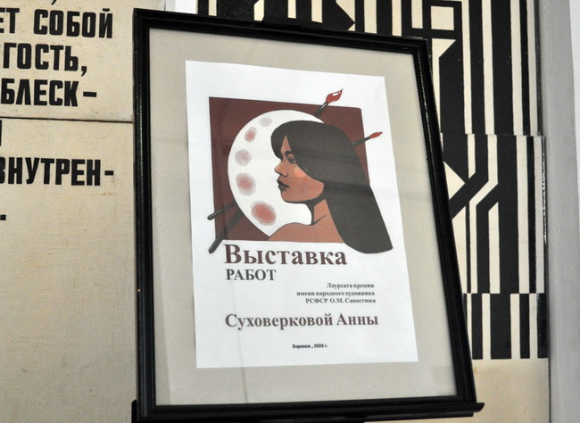 17 февраля в выставочном зале Воронежского художественного училища имени Николая Ге открылась отчётная выставка Анны Суховерковой, студентки 4 курса специальности «Живопись», обладателя стипендии народного художника РСФСР Олега Савостюка 2025 года.