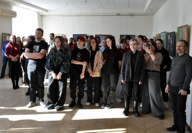 На открытие выставки пришли студенты училища, преподаватели и родственники Анны Суховерковой. Присутствие семьи Анны добавило выставке тёплую, личную нотку. Многодетная и дружная семья играет важную роль в формировании личности художника, создавая ту атмосферу поддержки и вдохновения, которая так необходима в творческом поиске.