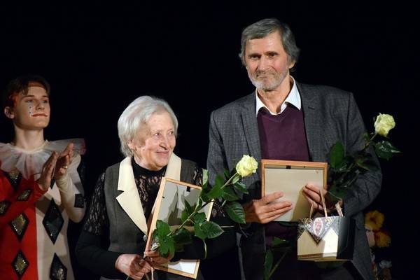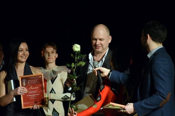 Самый волнующий момент вечера наступил тогда, когда на сцену поднялись лауреаты премии «Браво!» в номинации «За честь и достоинство – профессор ВГИИ Виолетта Тополага и заслуженный артист РФ, ведущий актёр театра кукол «Шут» Михаил Мальцев. Зал наградил этих замечательных людей и выдающихся мастеров мощной овацией. Призы лауреатам в самой почётный номинации вручал большой друг театрального конкурса Владимир Бубнов, которому за поддержку театрального искусства в Воронеже огромное спасибо.