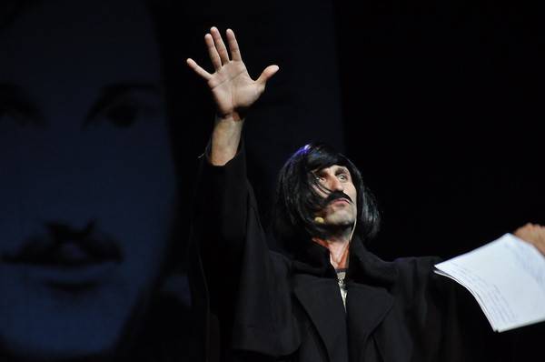 Позабавил зрителей эпизод, когда на сцену вышли Пушкин, Гоголь и Горький и вместе стали ломать голову над тем, как не допустить на сцену театра Вырыпаева.