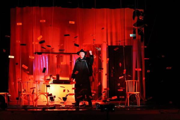 Сценография постановки решена фантастическим способом: всё летает, увлекая своей метафоричностью и многозначностью, вся предметная среда - словно развёрнутая метафора.